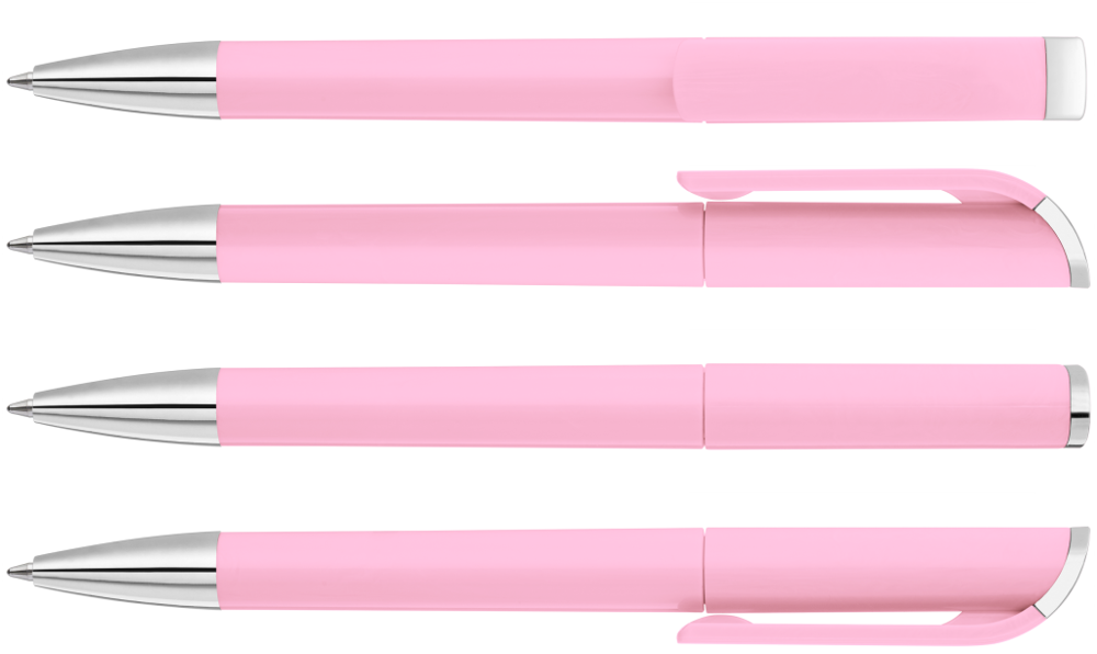 Drehkugelschreiber mit gedeckt glänzendem Gehäuse, Stopfen und Spitze glanzverchromt. mehr