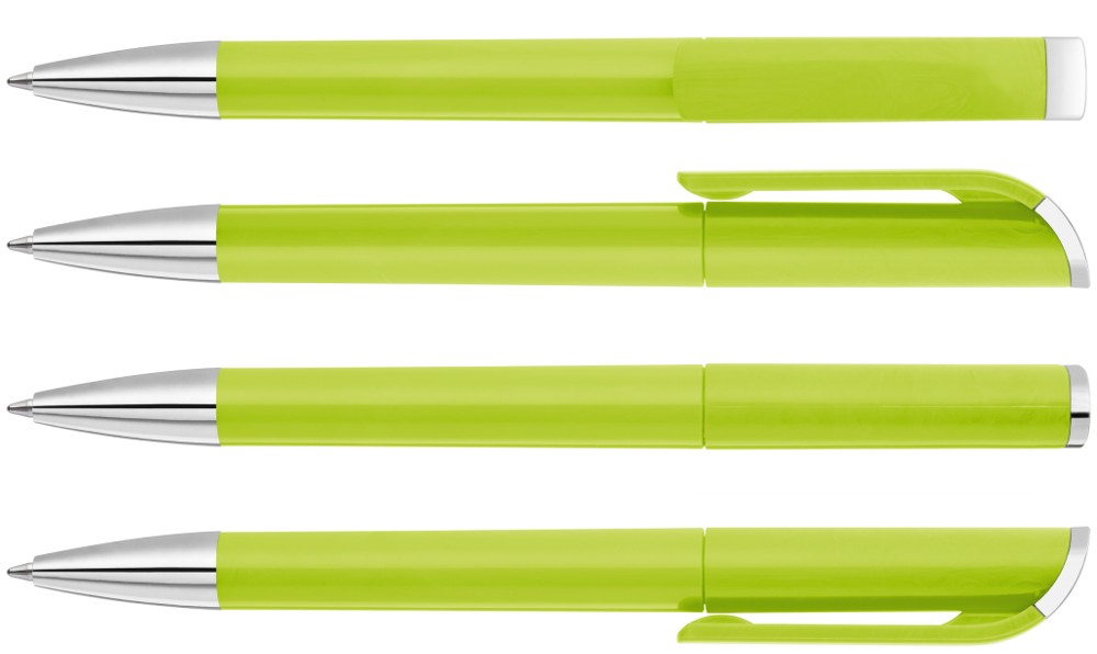 Drehkugelschreiber mit gedeckt glänzendem Gehäuse, Stopfen und Spitze glanzverchromt. mehr
