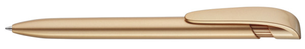Druckkugelschreiber mit gedeckt glänzendem Gehäuse in silber oder gold und breitem Bogenclipdrücker. mehr