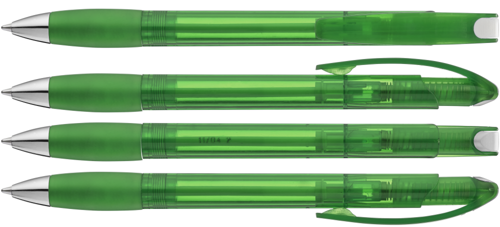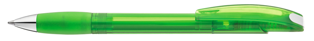 Druckkugelschreiber mit transparent glänzendem Gehäuse, Gummigriffzone und Clipdrücker.... mehr