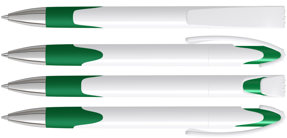 Druckkugelschreiber mit gedeckt glänzendem Gehäuse, Gummigriffzone und schwerer Metallspitze glanzverchromt.