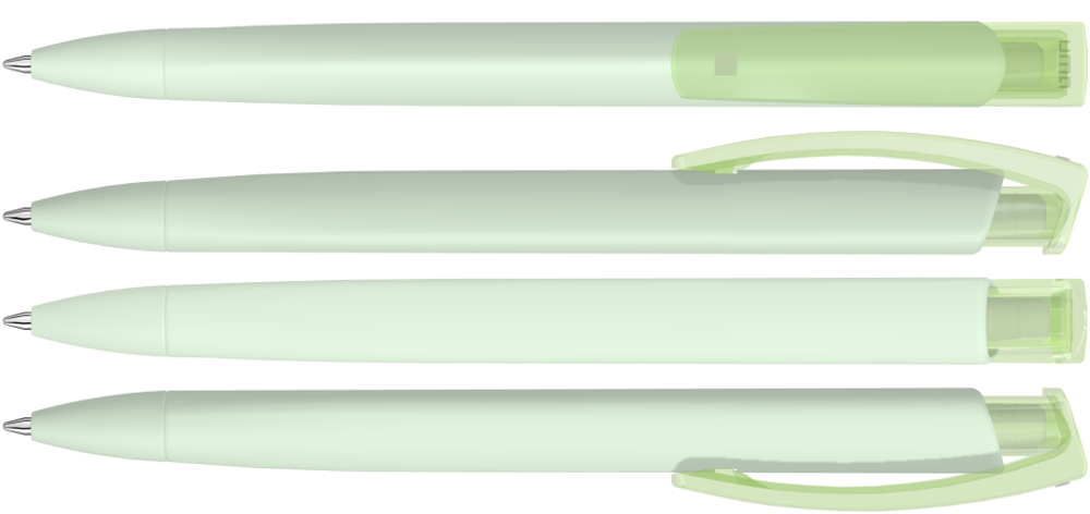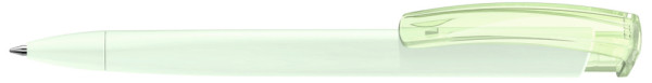 Druckkugelschreiber mit gummiertem Dreikantgehäuse und transparent glänzendem Clip. mehr
