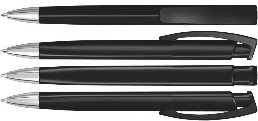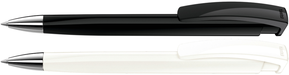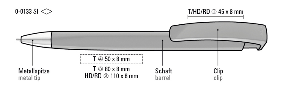 Druckkugelschreiber mit gedeckt glänzendem Dreikantgehäuse und schwerer Metallspitze glanzverchromt. mehr