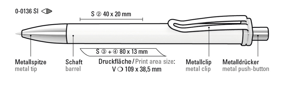 Druckkugelschreiber mit gedeckt glänzendem Schaft und Clipaufhängung. Breiter Metallbiegeclip,... mehr