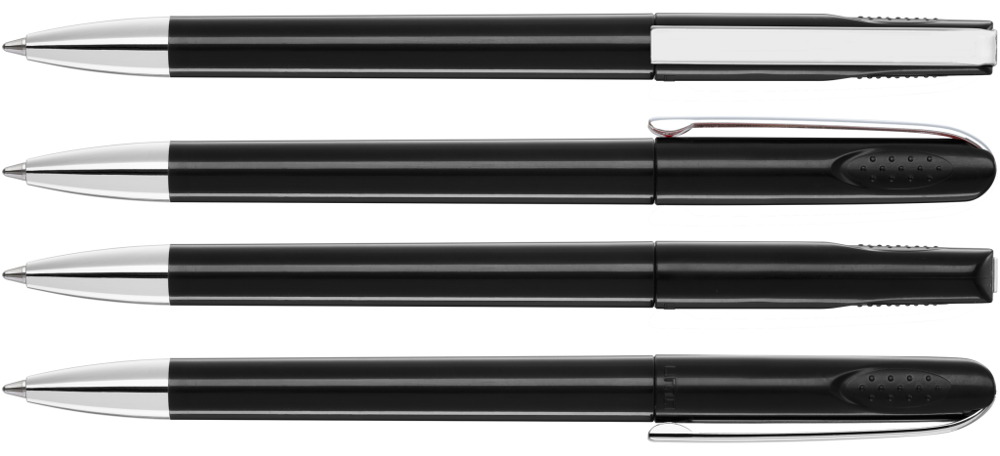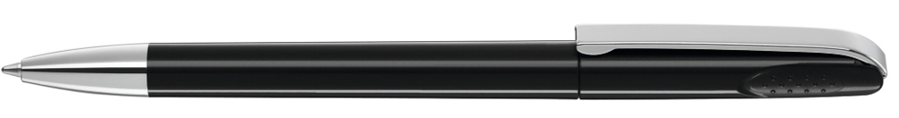 Drehkugelschreiber mit glänzend gedecktem Gehäuse, schwerer Metallspitze und Metallclip. Griffnoppen in der Kappe unterstützen den komfortablen Drehmechanismus.