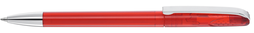 Drehkugelschreiber mit glänzend transparentem Gehäuse, schwerer Metallspitze und Metallclip. Griffnoppen in der Kappe unterstützen den komfortablen Drehmachanismus.