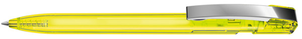 Druckkugelschreiber mit transparent glänzendem Gehäuse und flexiblem Metallclip glanzverchromt. mehr