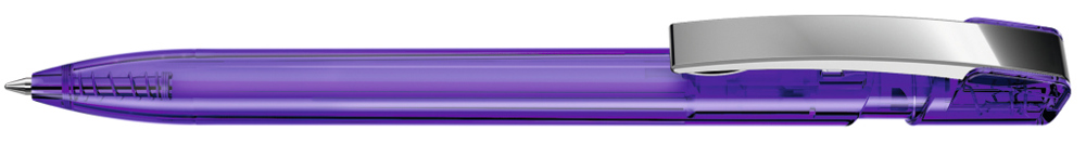 Druckkugelschreiber mit transparent glänzendem Gehäuse und flexiblem Metallclip glanzverchromt. mehr