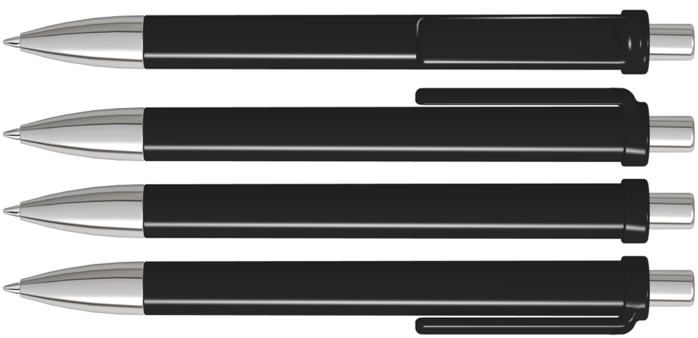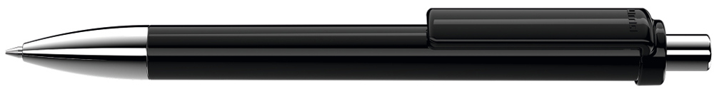 Druckkugelschreiber mit gedeckt glänzendem Schaft und Clip, Metallspitze und Metalldrücker glanzverchromt.