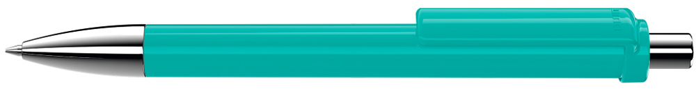 Druckkugelschreiber mit gedeckt glänzendem Schaft und Clip, Metallspitze und Metalldrücker glanzverchromt.