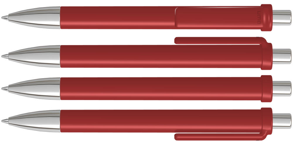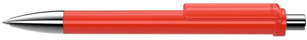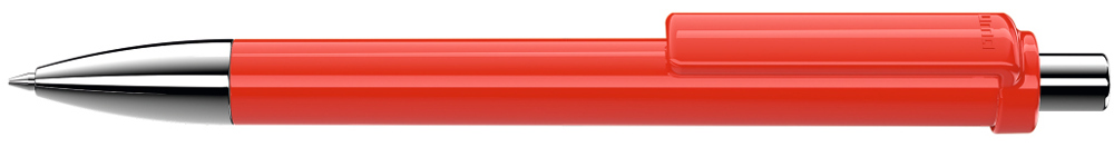 Druckkugelschreiber mit gedeckt glänzendem Schaft und Clip, Metallspitze und Metalldrücker glanzverchromt.