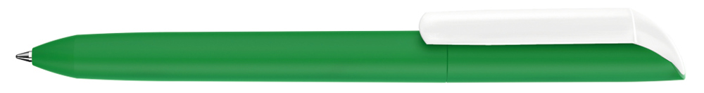 Drehkugelschreiber mit Softtouch-Gehäuse und gedeckt glänzendem Clip in weiß.