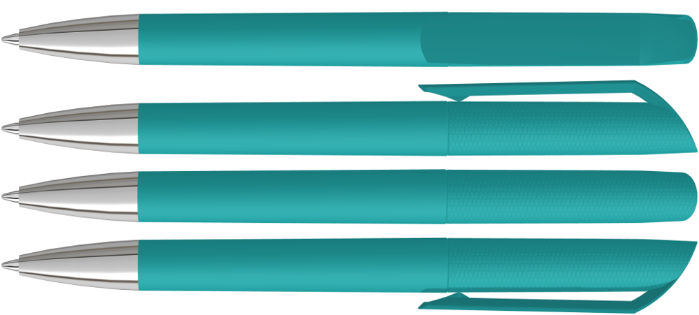 Drehkugelschreiber mit Softtouch-Gehäuse und gedeckt glänzendem Clip, Spitze glanzverchromt.