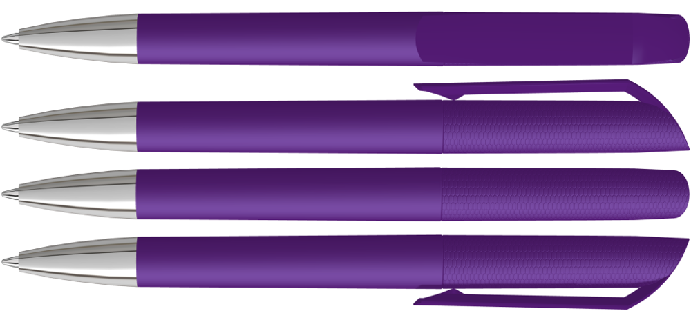 Drehkugelschreiber mit Softtouch-Gehäuse und gedeckt glänzendem Clip, Spitze glanzverchromt.