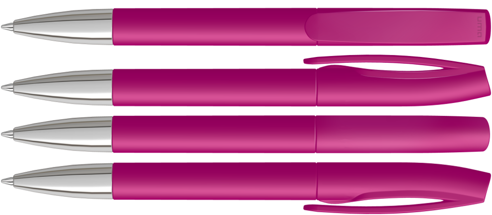 Drehkugelschreiber mit matt gedecktem Gehäuse und silberner Spitze glanzverchromt.