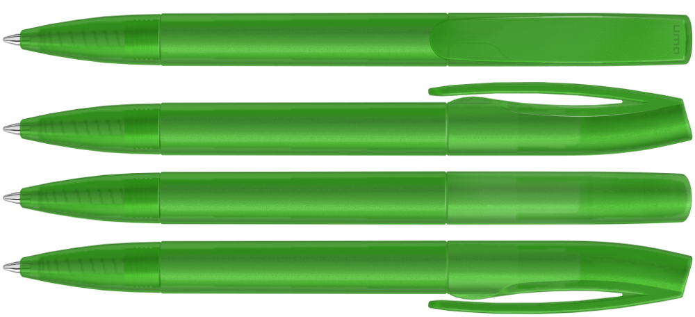 Drehkugelschreiber mit transparent gefrostetem Gehäuse.