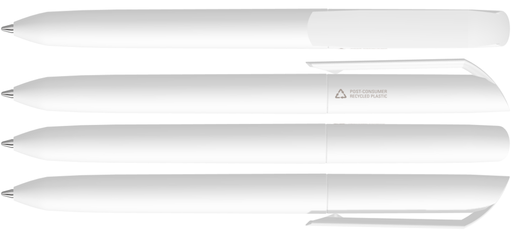 Drehkugelschreiber mit gedeckt mattem Gehäuse und Clip aus 100% recyceltem Post-Consumer-Kunststoff.