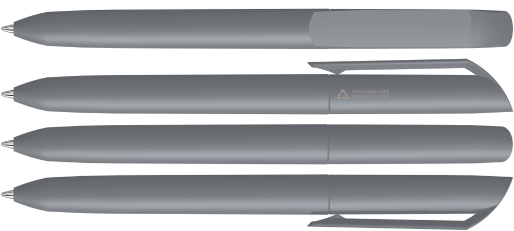 Drehkugelschreiber mit gedeckt mattem Gehäuse und Clip aus 100% recyceltem Post-Consumer-Kunststoff.