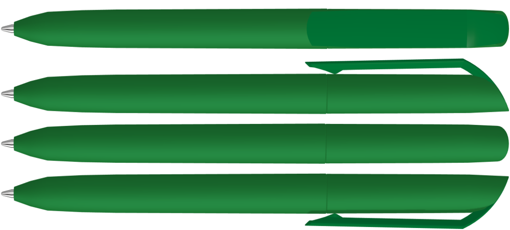 Drehkugelschreiber mit Softtouch-Gehäuse und gedeckt glänzendem Clip.