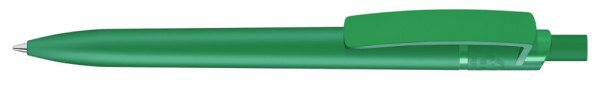 Druckkugelschreiber aus recyceltem PET-Material mit matt gedecktem Gehäuse, Clip und Drücker.