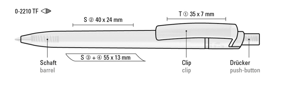 Druckkugelschreiber aus recyceltem PET-Material mit transparent gefrostetem Gehäuse, Clip und Drücker.