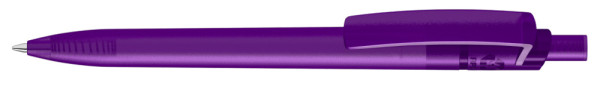 Druckkugelschreiber aus recyceltem PET-Material mit transparent gefrostetem Gehäuse, Clip und Drücker.