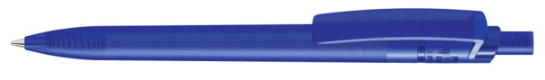 Druckkugelschreiber aus recyceltem PET-Material mit transparent gefrostetem Gehäuse, Clip und Drücker.