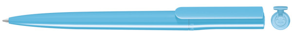 Drehkugelschreiber aus recyceltem PET-Material mit gedeckt glänzendem Gehäuse.