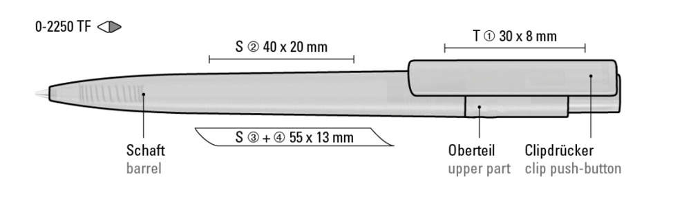 Druckkugelschreiber aus recyceltem PET-Material mit transparent gefrostetem Gehäuse und Clip.