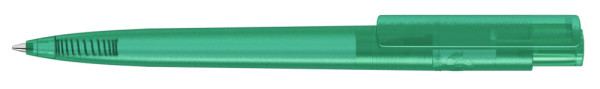 Druckkugelschreiber aus recyceltem PET-Material mit transparent gefrostetem Gehäuse und Clip.