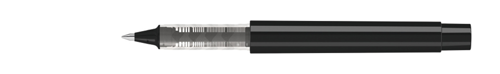 Rollerball mit Gehäuse aus recyceltem PET-Material in gedeckt glänzend weiß oder schwarz. Stopfen... mehr