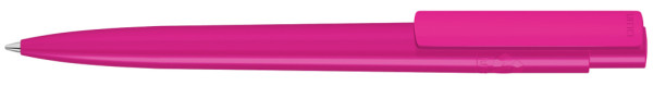 Druckkugelschreiber aus recyceltem PET-Material mit gedeckt glänzendem Gehäuse und Clip.