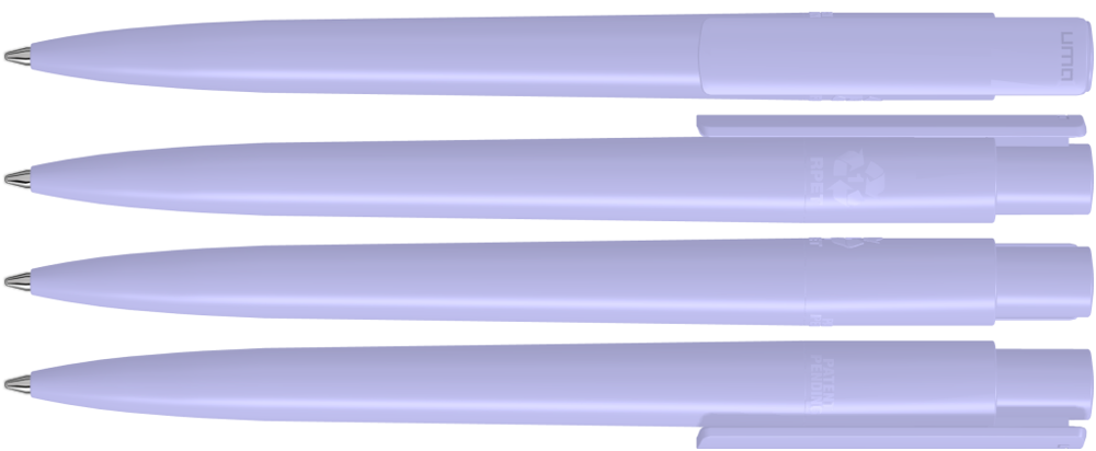 Druckkugelschreiber aus recyceltem PET-Material mit gedeckt glänzendem Gehäuse und Clip.