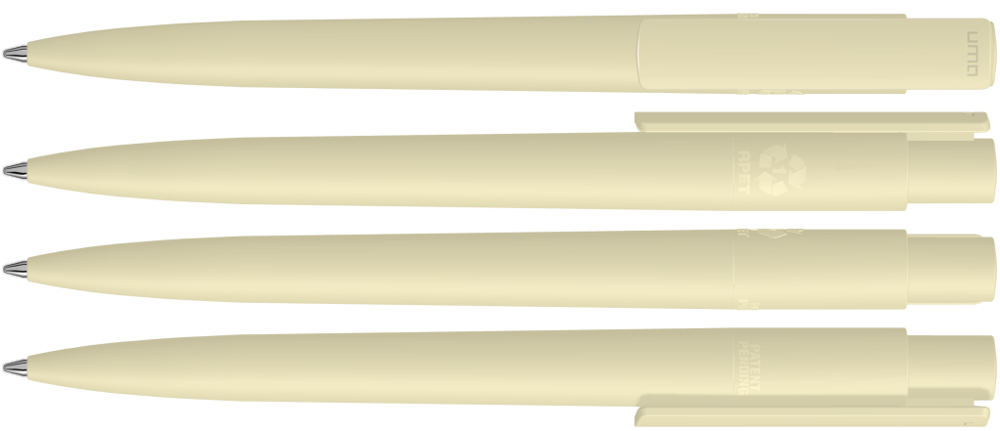 Druckkugelschreiber aus recyceltem PET-Material mit matt gedecktem Gehäuse und Clip.