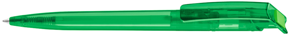 Druckkugelschreiber aus recyceltem PET-Material mit transparent glänzendem Gehäuse und gedecktem... mehr