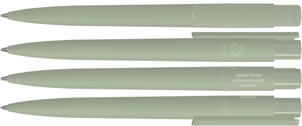 Druckkugelschreiber aus recyceltem PET-Material aus Ocean Bound Plastic mit matt gedecktem Gehäuse und Clip. Das durch Plastic Bank gesammelte Ocean Bound Plastic, auch bekannt als Social Plastic®, wird in Europa zu einem recycelten PET Schreibgerät für einen langlebigen und nachhaltigen Werbeeinsatz upgecycelt.