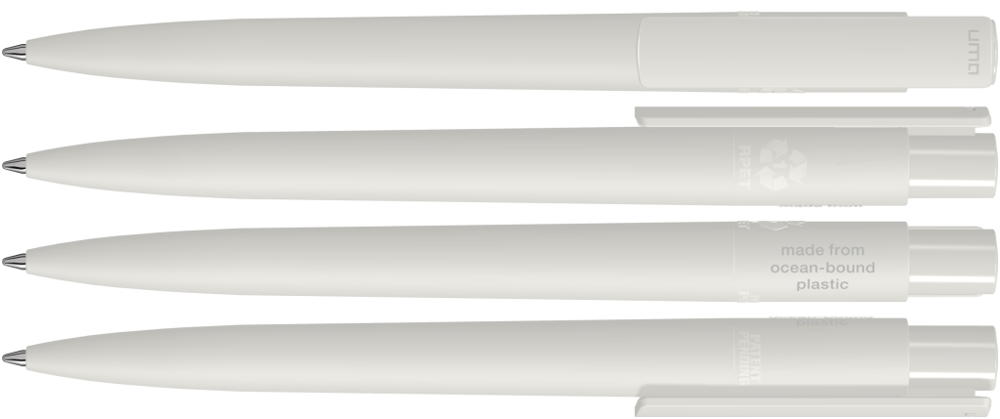 Druckkugelschreiber aus recyceltem PET-Material aus Ocean Bound Plastic mit matt gedecktem Gehäuse und Clip. Das durch Plastic Bank gesammelte Ocean Bound Plastic, auch bekannt als Social Plastic®, wird in Europa zu einem recycelten PET Schreibgerät für einen langlebigen und nachhaltigen Werbeeinsatz upgecycelt.