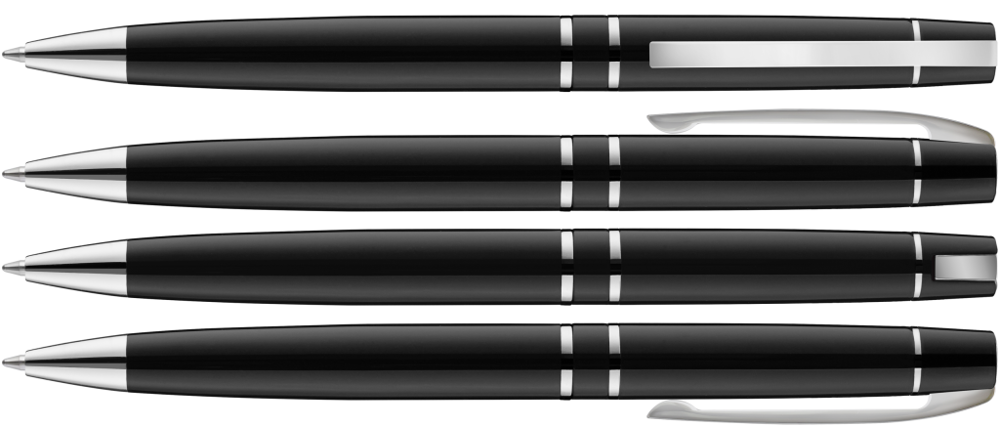 Schlanker Metall-Drehkugelschreiber mit Softdrehmechanik und gefedertem Clip. Beschlagteile glanzverchromt.