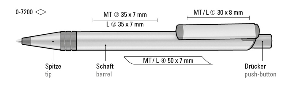 Metall-Druckkugelschreiber mit Metallspitze, Metallschaft und Metallclip aus recyceltem Aluminium, Kunststoffteile aus recyceltem PET-Material in gedeckt schwarz und gedeckt farbigem Drücker.