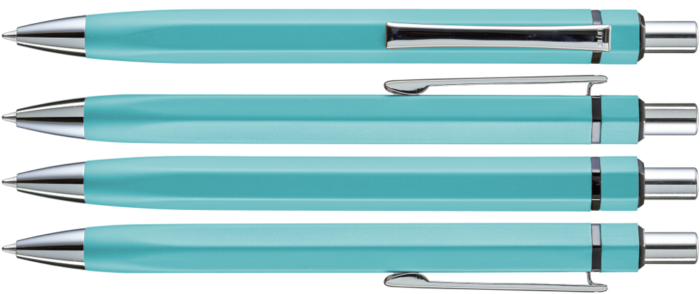 Metall-Druckkugelschreiber mit matt lackiertem, sechskantigem Aluminiumschaft. Metallclip,... mehr