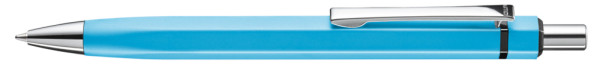 Metall-Druckkugelschreiber mit matt lackiertem, sechskantigem Aluminiumschaft. Metallclip, Metallspitze und Drücker silber glänzend. Zierring schwarz glänzend.
