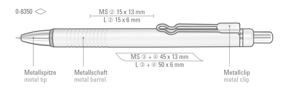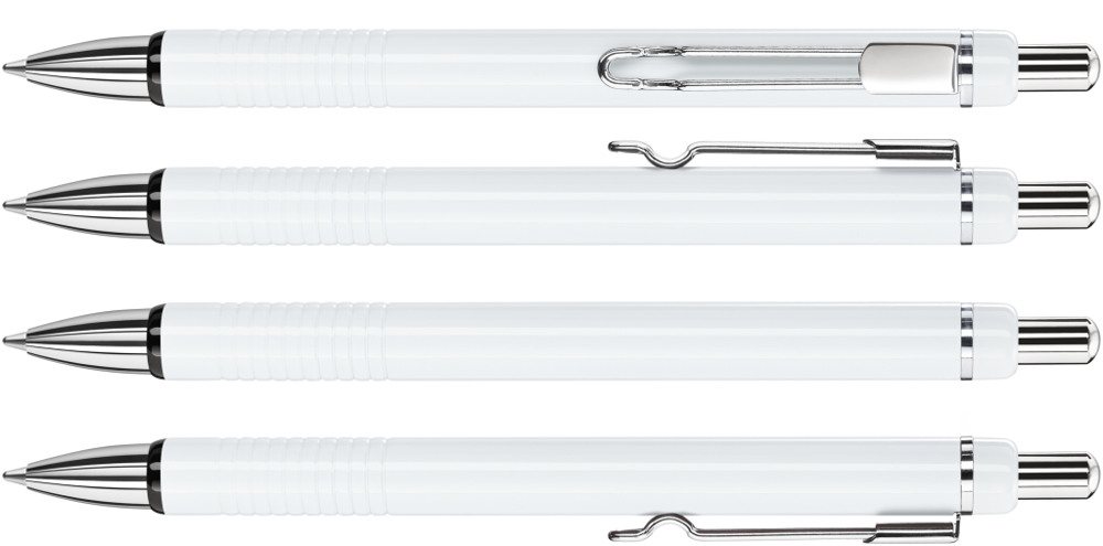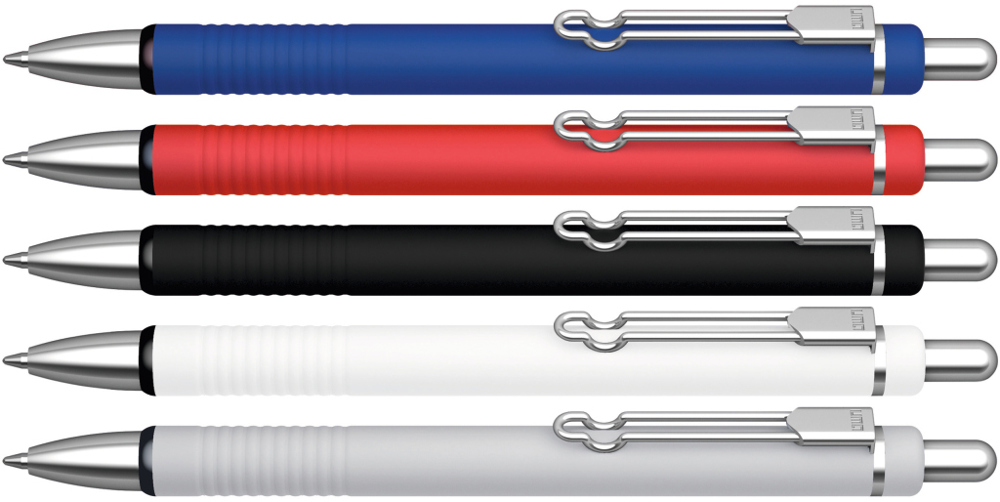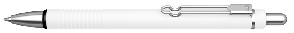 Metall-Druckkugelschreiber mit matt lackiertem Aluminiumschaft und integrierter Griffzone. Metallbügelclip und Beschläge glanzverchromt. Zierring schwarz.