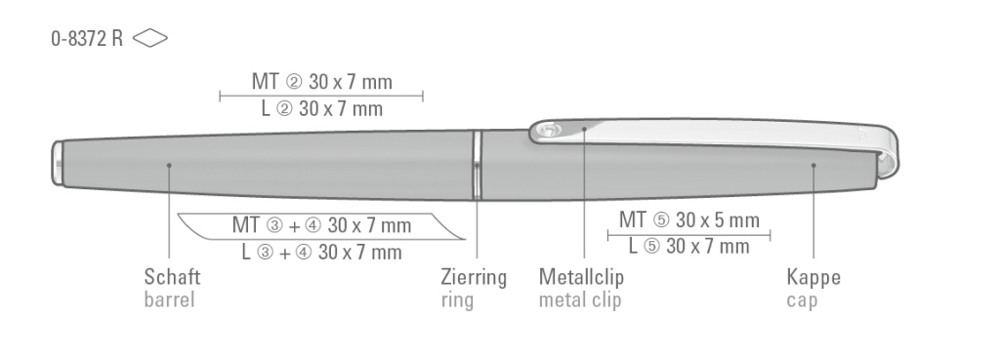 Metall-Rollerball mit glänzendem Gehäuse. Langer flexibler Metallclip, Zierring und Stopfen... mehr