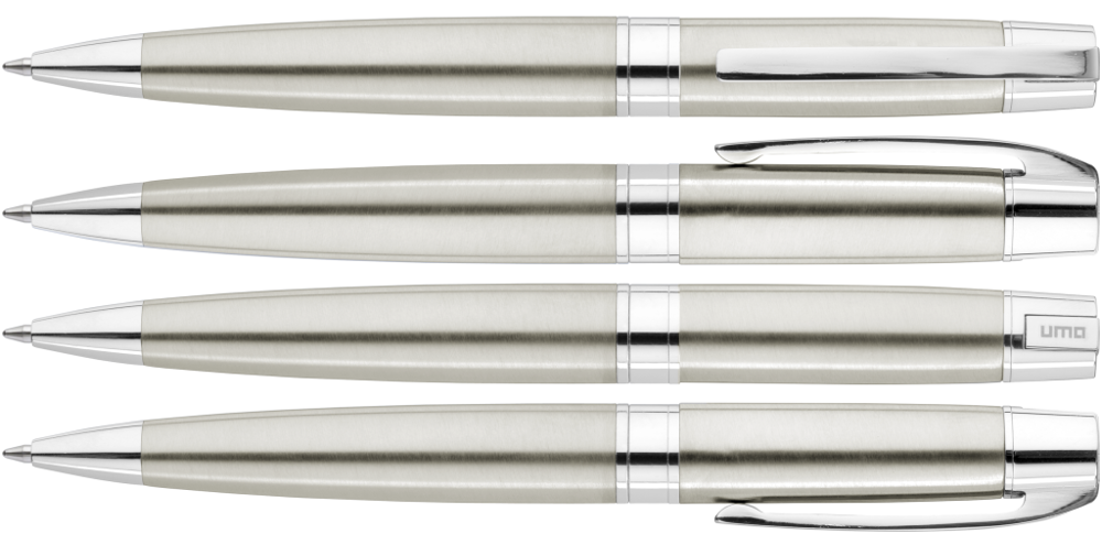 Metall-Drehkugelschreiber mit Softdrehmechanik und gefedertem Clip. Beschlagteile glanzverchromt.