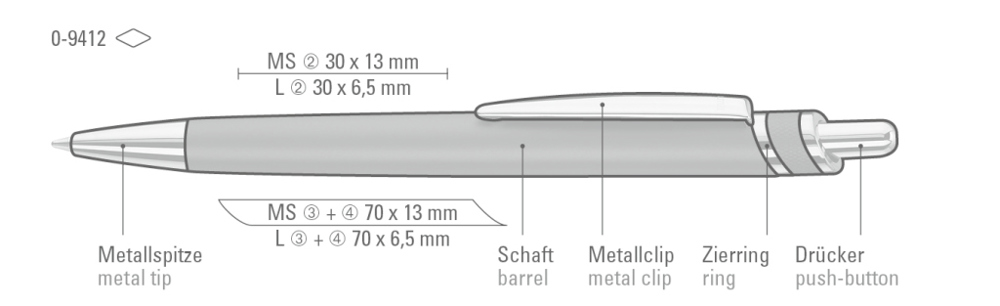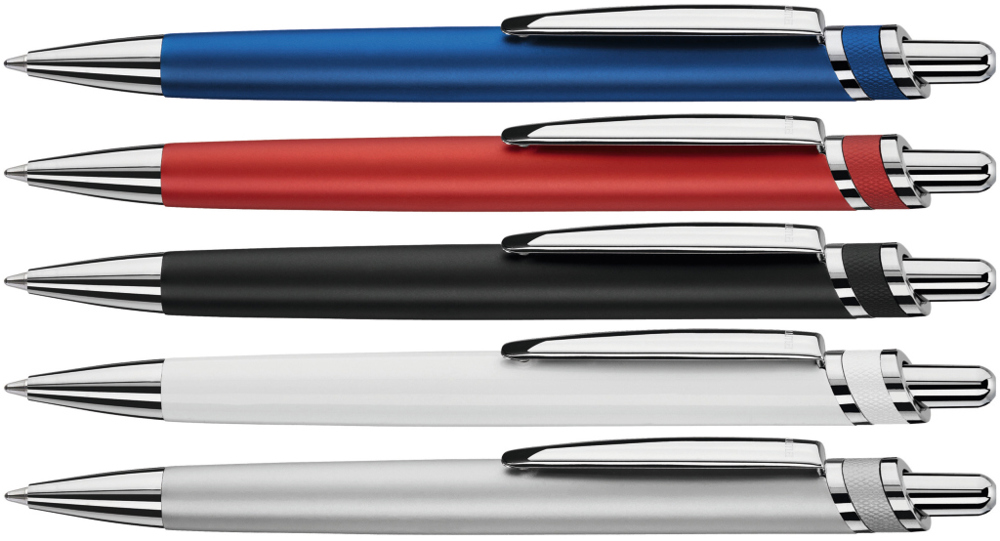Metall-Druckkugelschreiber mit matt lackiertem Aluminiumschaft. Beschlagteile glanzverchromt.