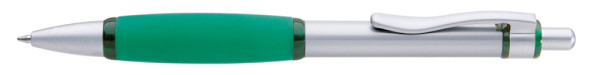 Metall-Druckkugelschreiber mit Schaft, Drücker, Clip und Spitze glanzverchromt. Große, farbige Gummigriffzone.