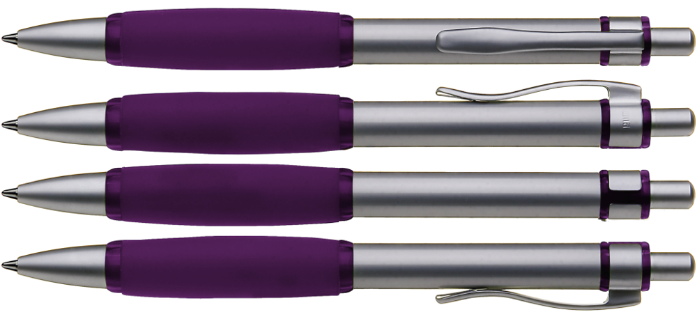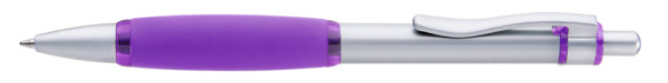 Metall-Druckkugelschreiber mit Schaft, Drücker, Clip und Spitze glanzverchromt. Große, farbige Gummigriffzone.