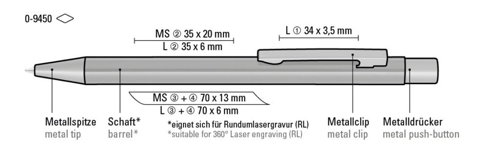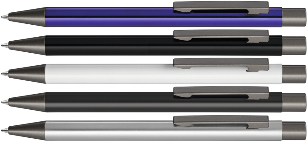 Metall-Druckkugelschreiber mit glänzendem Gehäuse. Metallclip, Metallspitze und Drücker GUN metallic.