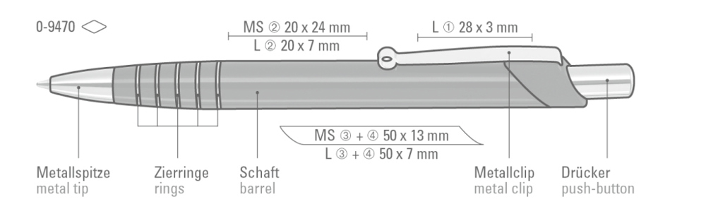 Metall-Druckkugelschreiber mit silbernen Zierringen im Gehäuse und elastischem Metallclip. Spitze... mehr