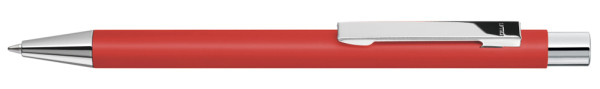 Metall-Druckkugelschreiber mit mattem Gehäuse. Metallclip, Metallspitze und Drücker silber glänzend. mehr